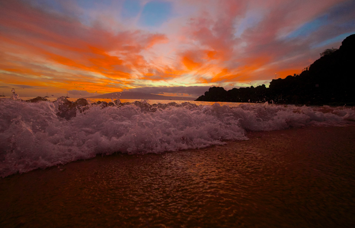 After a week on the Big Island, I took a small hopper flight on Mokulele Airlines to Maui. On the flight over Molokini we could see the whales breaching below us. After arriving I first acted like a local and headed straight to Walmart for supplies including a good supply of Fireball. Then I took in a movie before having dinner with old friends of mine Fred and Loy. After dinner I drove all the way around to Lahaina to check in to the Sheraton Maui Resort & Spa. This is located on an excellent beach where snorkeling is good and you can go cliff diving. Sunsets were spectacular. I ate at a lot of restaurants in Lahaina but my favorite was Koa’s Seaside Grill, also where Fred and Loy’s daughter Ashley works. Found Mick Fleetwood playing at his place one night. Oh and the sunsets are spectacular.