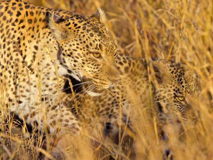 On this morning we leave very early, Innocent is determined to find cheetah for me. We are in a section of park with very little wildlife, but we continue to search and search and search. Finally we happen upon a family of cheetah feeding on a kill. They are 80-100m away, I put on the 500mm lens and 2x extender for 1000mm and get some ok shots. As the cheetah finish and lay down in the grass for a nap, Innocent tells us that if we had paid $1000 each, we could have gotten photographers license and been able to drive closer. He also tells us that the penalty for driving closer without the license is $200, I wonder if I had known earlier if I would have risked it. Today we lunch in camp and siesta through the heat of the day. Later in the day we come across a young leopard hiding in the tall grass waiting for his mommy. We wait patiently but there is no action. I suggest that we go over to the tree line and see what is over there and then return after a bit. At the tree line we find 2 cheetahs in the grass and get a few closer shots and I’m pretty pleased. When we return to the young leopard his mommy has returned and they are on the move, towards us with several Land Rovers trailing them. As they move too close for the 500 I switch cameras but fail at getting a decent shot, then they pass further and I switch back to the 500mm with 1.4x teleconverter making 700mm and end up with a fantastic shot which is probably my favorite from the trip, the baby leopard and mommy blending in the grass with semi-clear sight lines to their eyes. The sunset is lacking tonight but we join a new group of clients around a campfire for a well deserved before dinner drink.