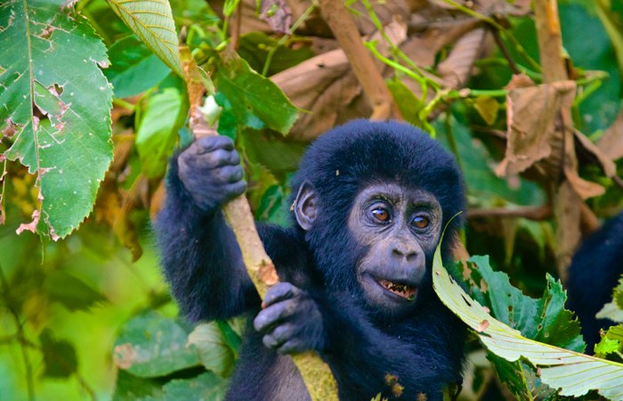 Thursday May 29th at breakfast I can hear a family of Gorillas in the valley below my resort. I’m driven to the Bwindi Impenetrable Forest National Park and watch some video of the Mountain Gorillas while waiting for everyone to arrive. Each day each gorilla family that has been acclimated to human visitors is visited by a single group of 8 clients for 1 hour only. This costs $800 per client. The fees go to protecting the gorillas from poaching, running the park, salaries for local guides and money for the local community. Porters can be hired to carry your gear as you trek up to 8 hours to visit the gorillas. We are divided into groups of 8, each group to visit a family of gorillas for 1 hour. The rules are simple, stay 12meters from the animals, they can come closer to you, but if they do then do not touch them. I’m with a group of photography hobbyists like me who have all brought DSLRs with some variant of a 100-400mm lens. We are driven a dozen miles where I hire a porter. We start hiking on a trail up a hill and then down a field to the edge of the jungle where we are told to drop our bags and walking sticks. Our hour begins and we hike 100m to the gorillas. Everyone is being very professional, keeping to the rules, not obstructing others and getting tons of shots. First shooting the male silverback then a mother with a baby. My favorites come at the end of the hour when an adolescent in a tree in front of us and at eye level is goofing around with us, fascinated by the sound of our shutters clicking away. So much fun, but the hour seems to end quickly and we have to walk away from this fascinating experience of a lifetime. We collect our bags and it starts to rain as we climb the steep slopes of a tea farm. The rain lets up long enough for us to eat lunch and then we hike back to the cars and return to our hotels. The day brings more rain and the night thunderstorms.